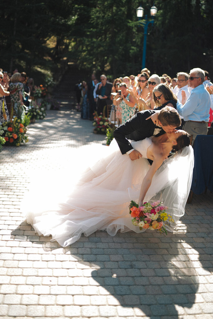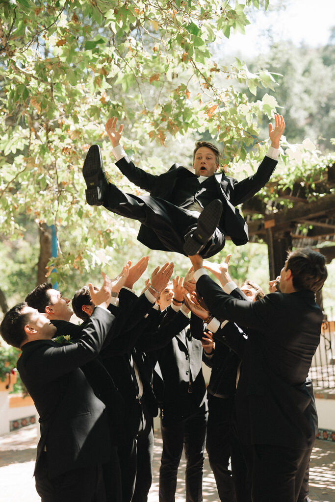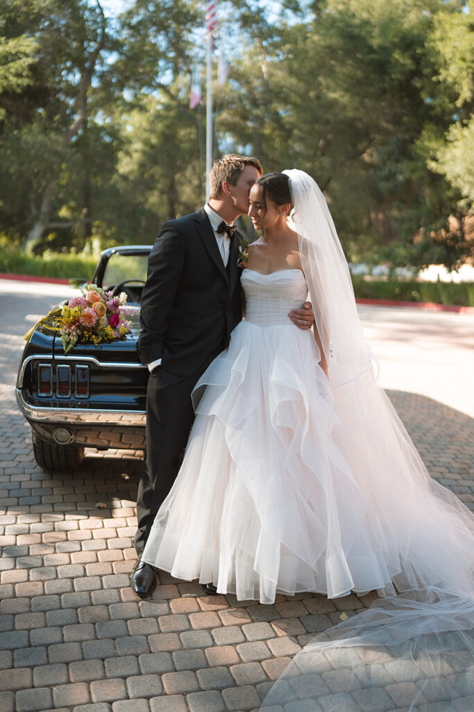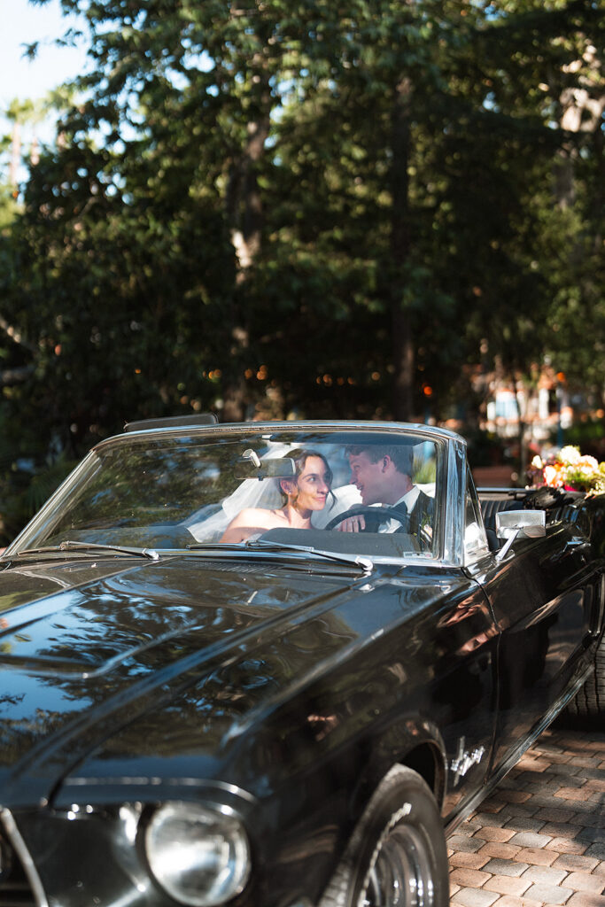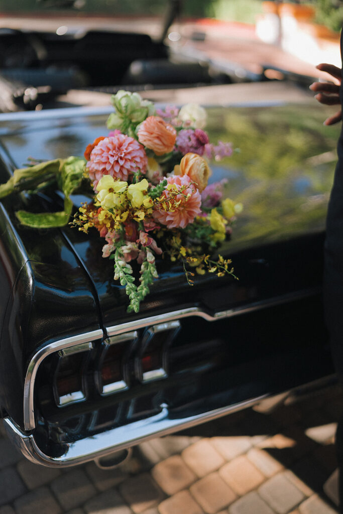 After the ceremony, the newlyweds and their bridal party posed for relaxed and fun photos, capturing genuine moments across the property. We especially loved how their getaway car, a classic black Ford Mustang convertible, was worked into the post-ceremony shot list ensuring their photos with it would not feel like an afterthought at the end of the night.
